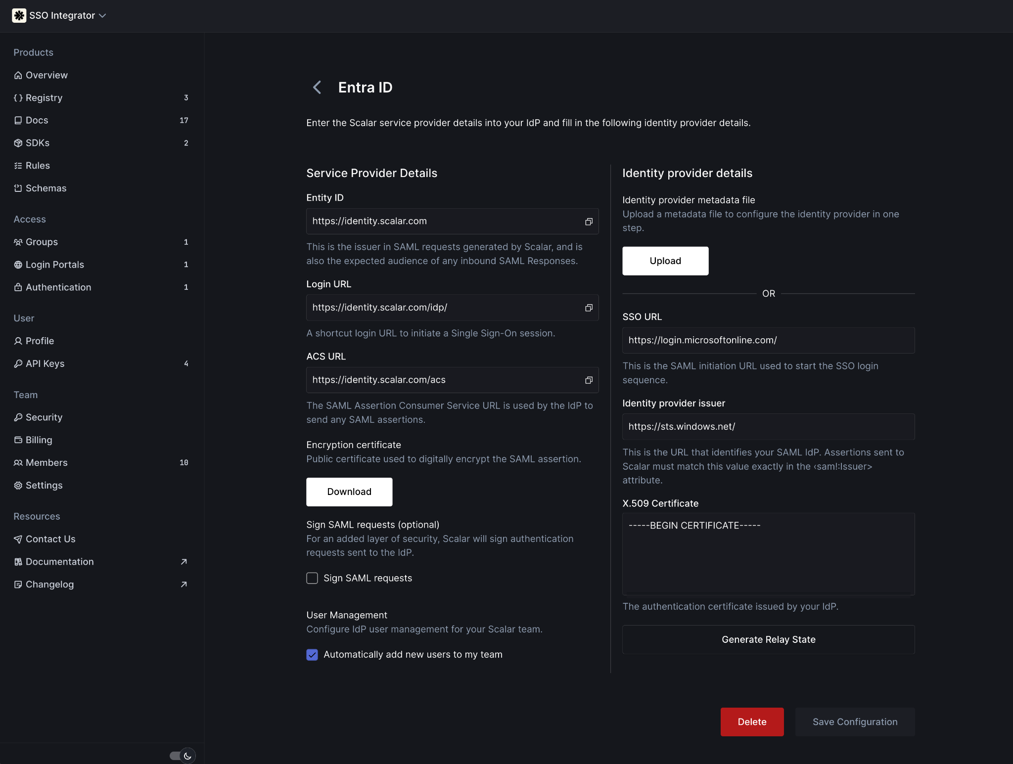 • SSO/SAML requires a Scalar Enterprise subscription. Read more about our pricing.